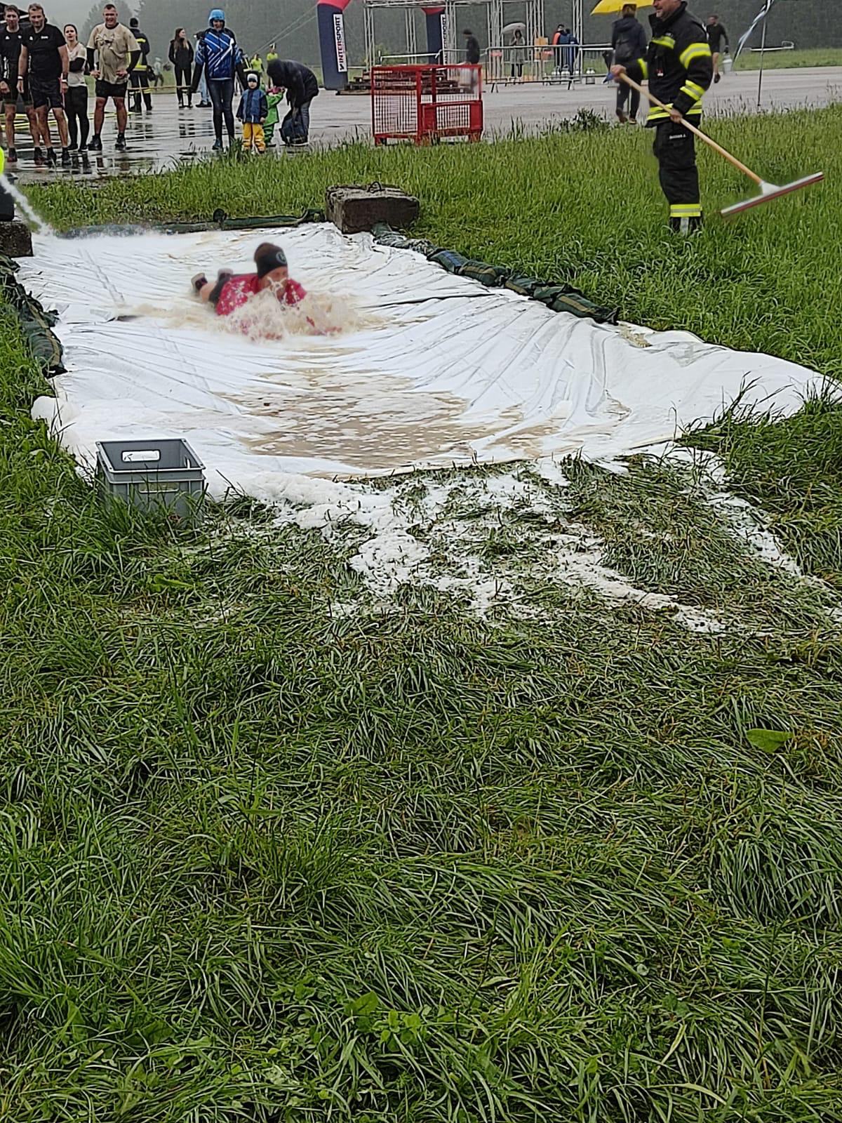 Anspruchsvolle 7 km und 20 Hindernisse lagen vor uns und mussten überwunden werden. Der Wettergott hatte wohl auch seinen Spaß – er schickte uns immer wieder etwas Regen – noch mehr Gatsch. Trocken blieb an diesem Wochenende definitiv keiner.