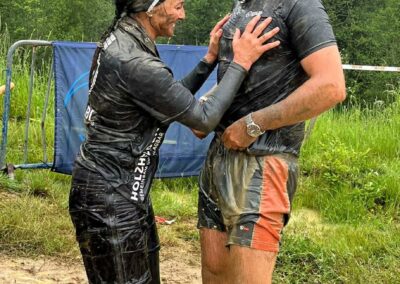 Die Union Nebelberg hat das Event top organisiert, und das schlechte Wetter konnte der guten Stimmung nichts anhaben. Über 1.100 weitere gut gelaunte Dirt Runner kämpften sich mit uns durch den Schlamm. Nicht jedes Hindernis war einfach, manchmal stand man seinen eigenen Ängsten und Grenzen gegenüber – aber im Team fand man Halt und Unterstützung und schon ging es weiter. Gemeinsam unschlagbar – das waren wir.